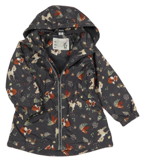 Tmavošedá šusťáková jarní parka se zvířátky a kapucí dopodopo