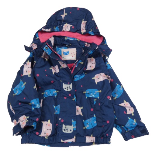 Tmavomodrá šusťáková jarní bunda s kočkami a kapucí