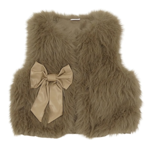 Hnědá kožešinová podšitá vesta s 3D mašlí