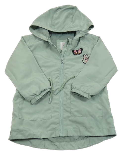Světlekhaki šusťáková jarní parka s motýly a kapucí Sinsay