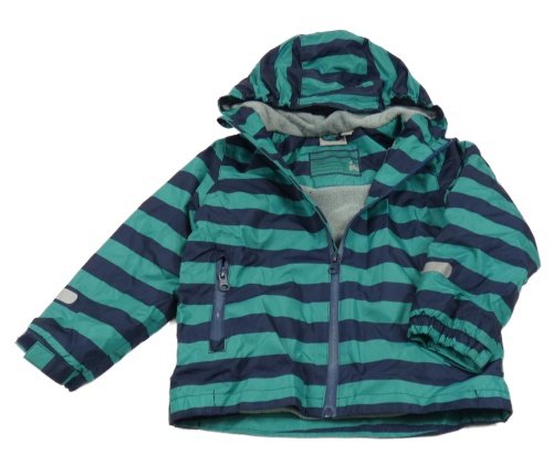 • Tmavomodro-zelená pruhovaná šusťáková jarní bunda s kapucí Impidimpi