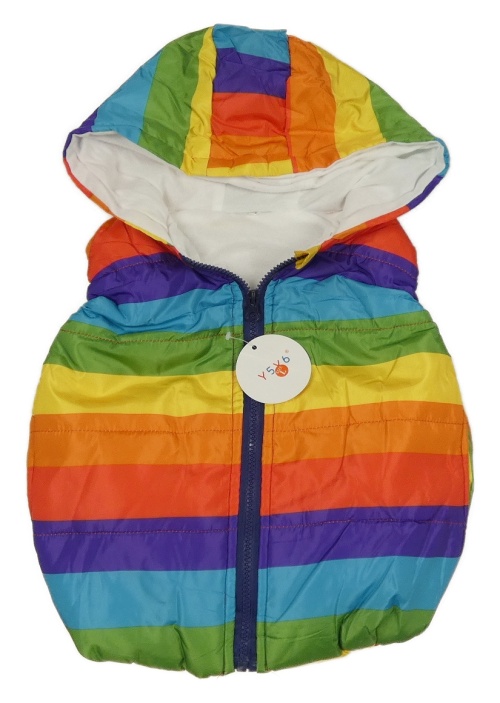 Nové - barevná pruhovaná prošívaná šusťáková zateplená vesta s kapucí