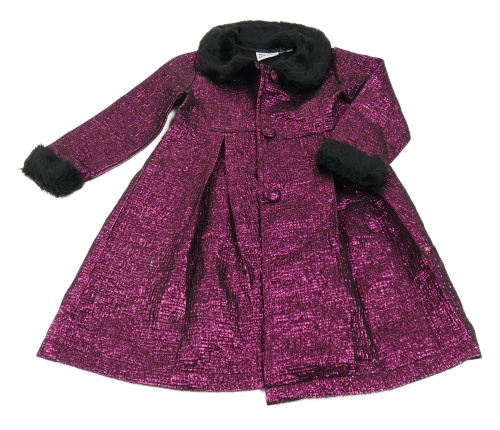Tmavorůžovo-černý lesklý lehký kabát s kožešinovým lemem