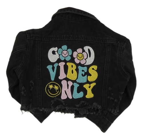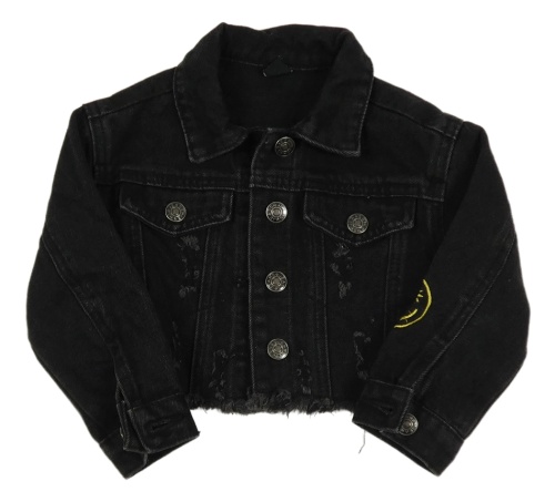 Černá crop riflová bunda s nápisem na zádech Shein
