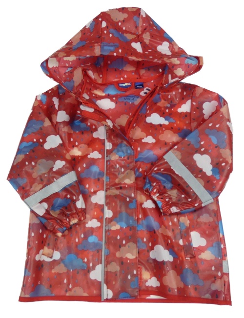 Červená pláštěnka s mráčky a kapucí Lupilu