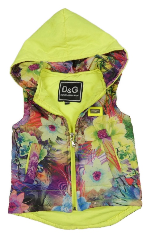 Barevná květovaná šusťáková zateplená vesta s kapucí Dolce&Gabbana