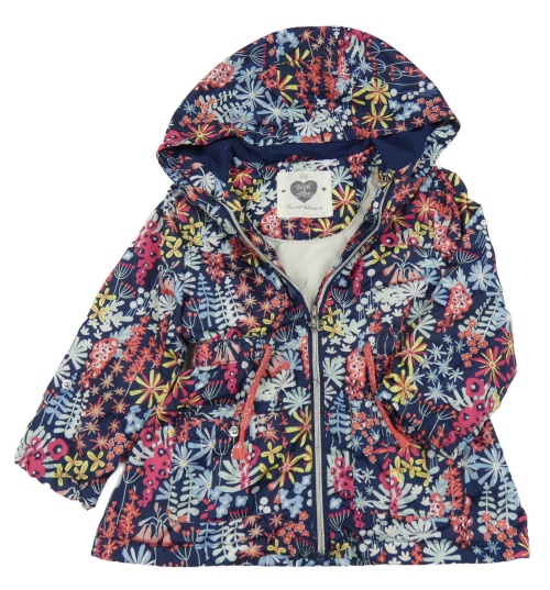 Tmavomodrá šusťáková jarní zateplená parka s kytičkami a kapucí F&F