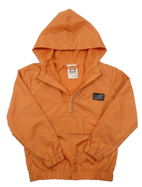 Oranžová šusťáková jarní bunda s nášivkou a kapucí
