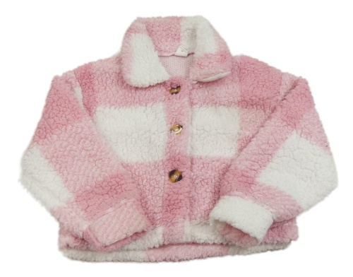 Bílo-růžová kostkovaná huňatá košilová crop bunda Shein