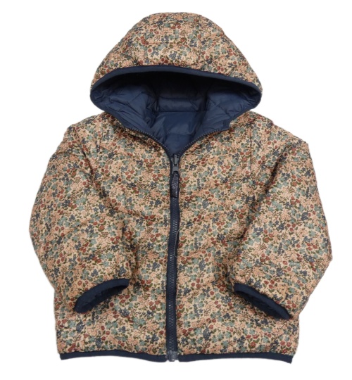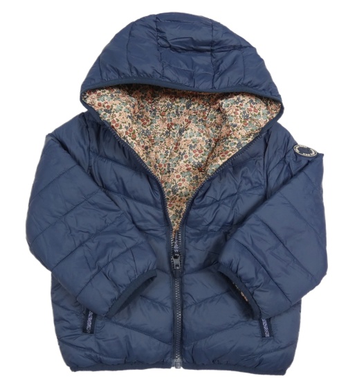Světlerůžová květinová šusťáková oboustranná zateplená bunda s kapucí Vertbaudet