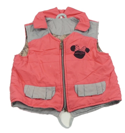 Lososovo-šedá šusťáková zateplená vesta s Minnie