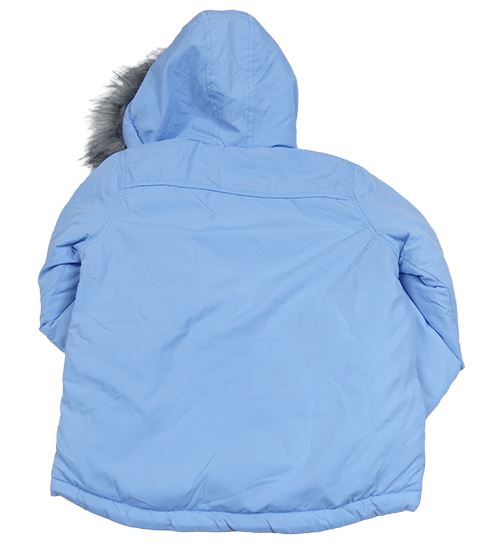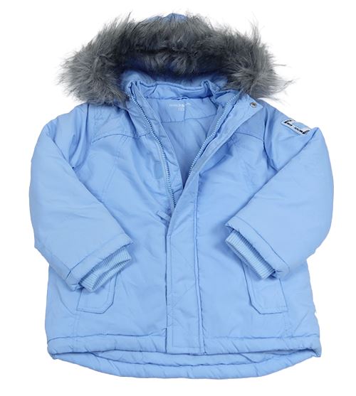 Světlemodrá šusťáková zimní bunda s nášivkou a kapucí