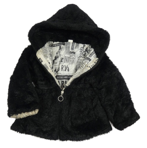 Černá kožešinová pod/zimní bunda s kapucí Shein