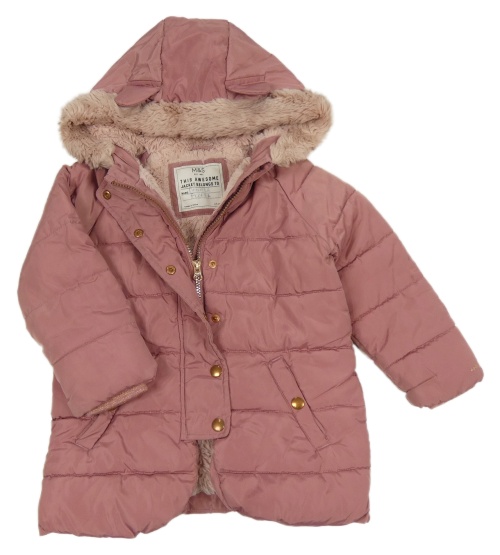 Růžová šusťáková prošívaná zimní bunda s kapucí M&S