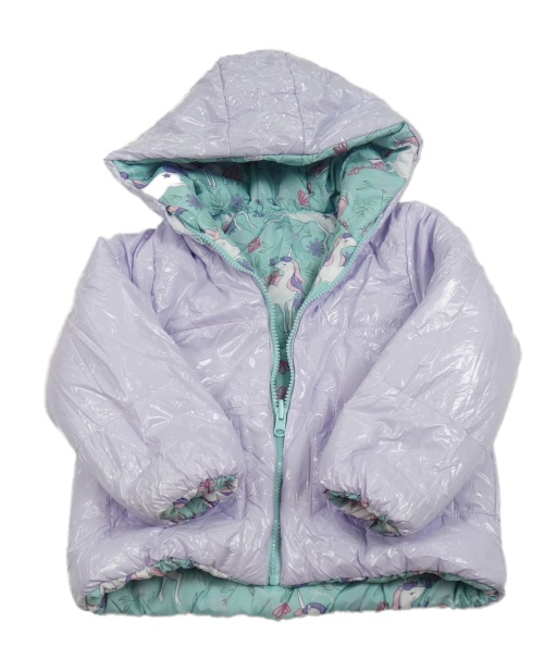 Lila lesklá šusťáková zimní oboustranná bunda s kapucí Pep&Co