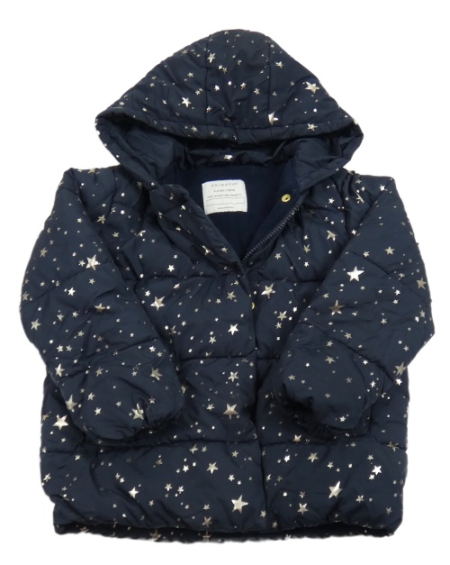 Tmavomodrá šusťáková zimní bunda s hvězdami a kapucí Primark