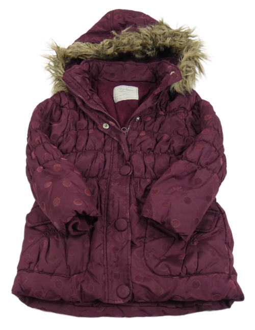 Vínový puntíkatý šusťákový zimní kabátek s kapucí s kožešinou Matalan