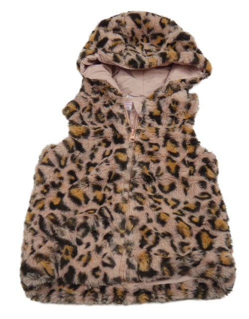 Starorůžová kožešinová zateplená vesta s leopardím vzorem a kapucí M&Co.