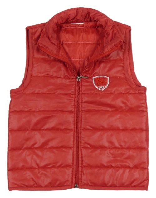 Červená šusťáková zateplená vesta s výšivkou