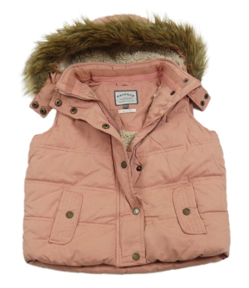Starorůžová šusťáková zateplená vesta s kapucí s kožešinou Fat Face