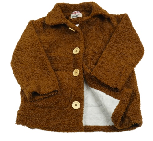 Hnědý huňatý zateplený kabát s límečkem