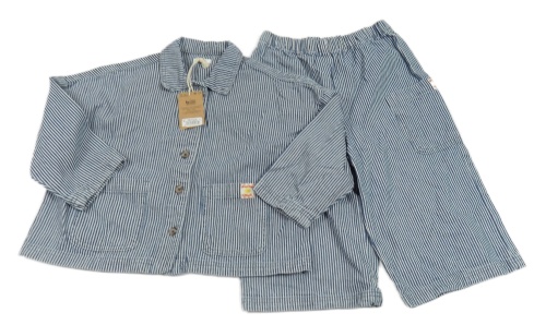 Nové - 2Set - Modro-bílý pruhovaný riflový kabátek + široké crop kalhoty Next