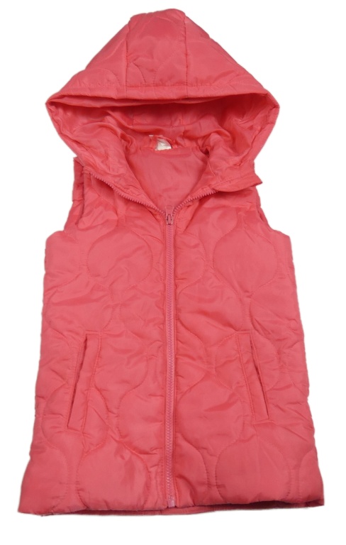 Růžová prošívaná šusťáková zateplená vesta s kapucí