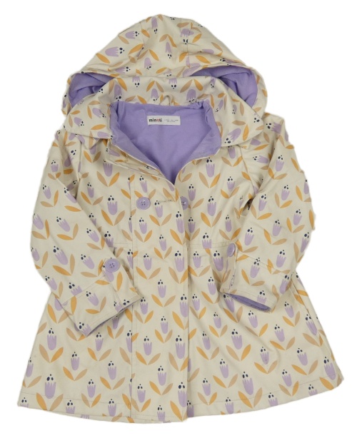 Béžový květovaný nepromokavý jarní kabát s kapucí Minoti