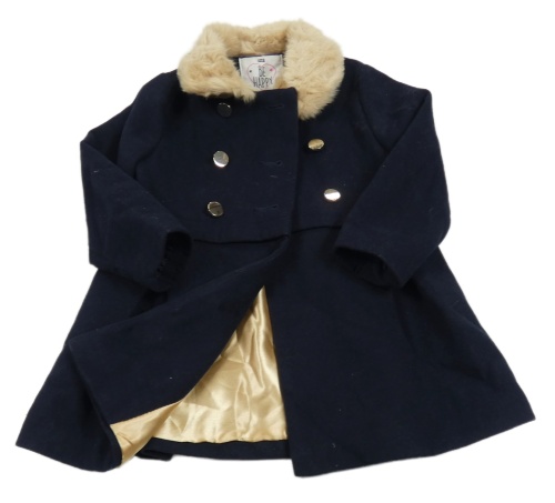 Tmavomodrý flaušový kabát s kožešinou F&F