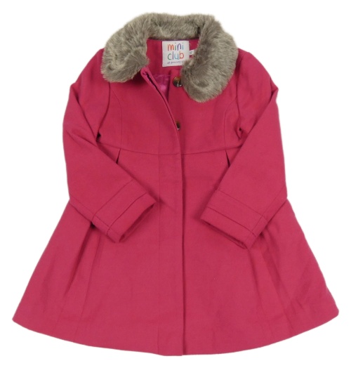 Růžový flaušový podšitý kabát s kožešinou Miniclub