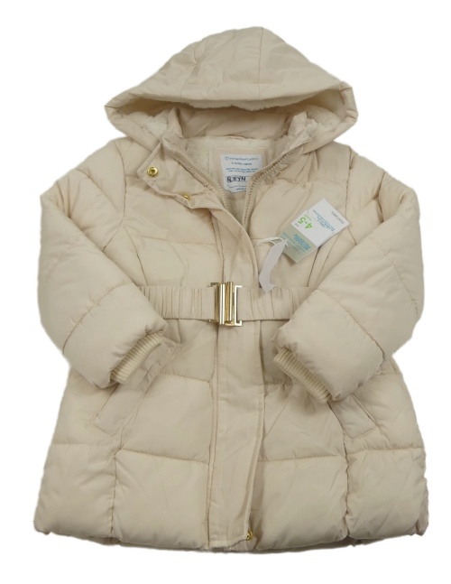 Nové - Smetanová šusťáková zimní bunda s páskem a kapucí Primark