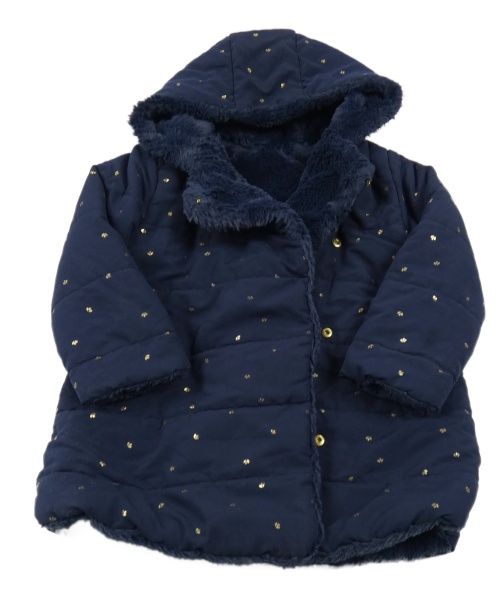 Tmavomodro-zlatý vzorovaný prošívaný zimní kabát s kapucí DU PareiL