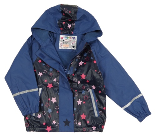 Modro-tmavomodrá hvězdičkovaná nepromokavá jarní bunda s kapucí Lupilu