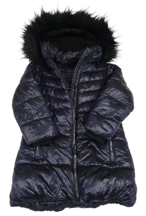 Tmavomodrý šusťákový prošívaný zimní kabát s kapucí Next