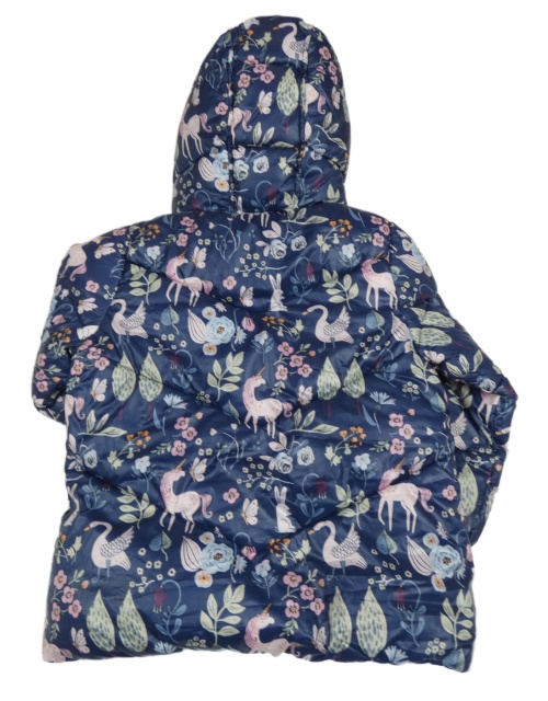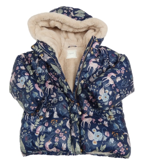 Tmavomodrá květovaná šusťáková zimní bunda se zvířaty a kapucí Next