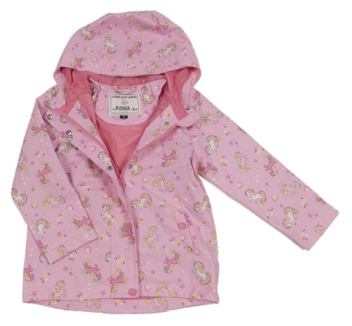 Růžová nepromokavá jarní bunda s jednorožci a kapucí C&A
