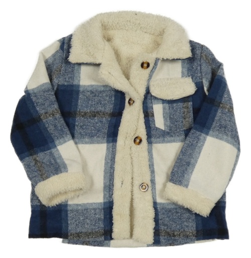 Tmavomodro-bílá kostkovaná flaušová zateplená košilová bunda Shein