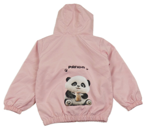 Světlerůžová šusťáková jarní bunda s pandou a kapucí