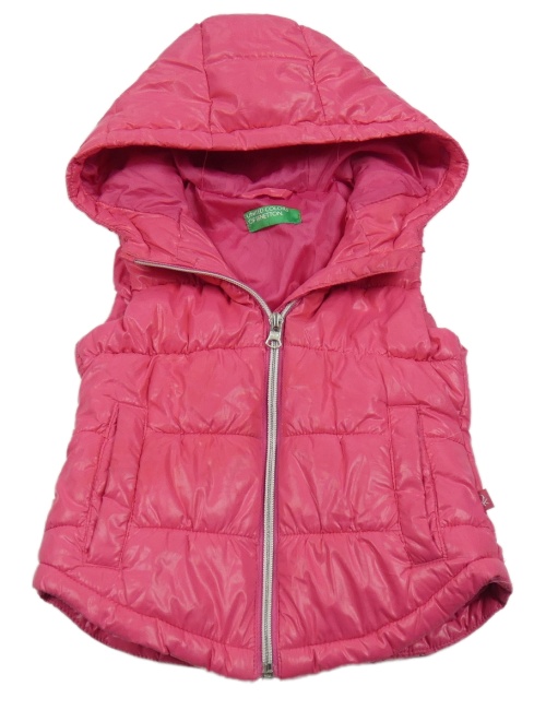 Fuchsiová šusťáková zateplená vesta s kapucí Benetton