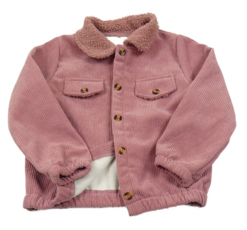 Růžová žebrovaná sametová zateplená košilová bunda s huňatým límcem