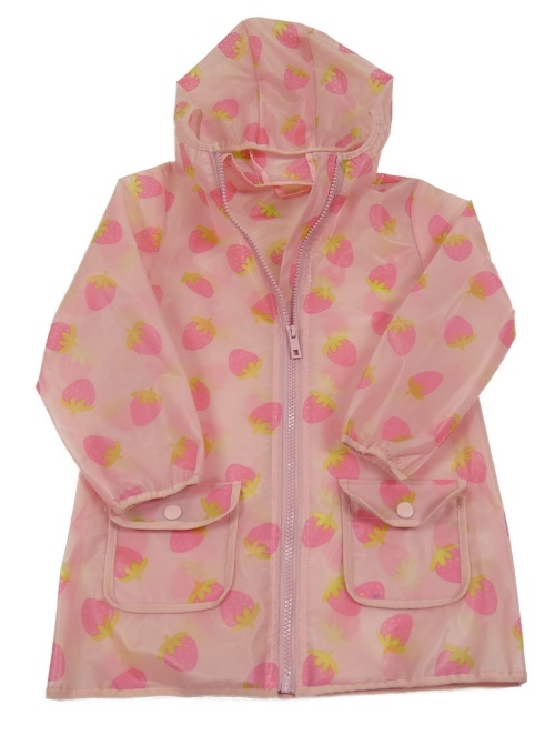 Světlerůžová pláštěnka s jahůdkami a kapucí