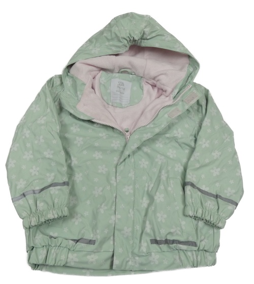 Mátová květovaná nepromokavá zateplená bunda s kapucí Kiki&Koko