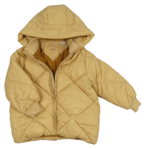 Béžová šusťáková prošívaná zimní bunda s kapucí Zara