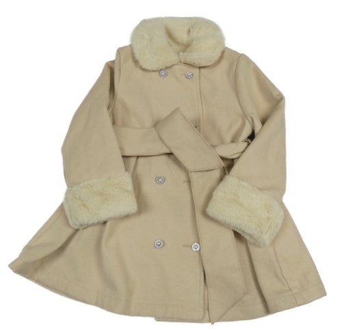 Béžový flaušový kabát s páskem a kožíškem Shein