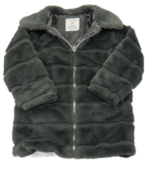 Tmavošedý žebrovaný kožešinový zateplený kabát s límečkem PRIMARK