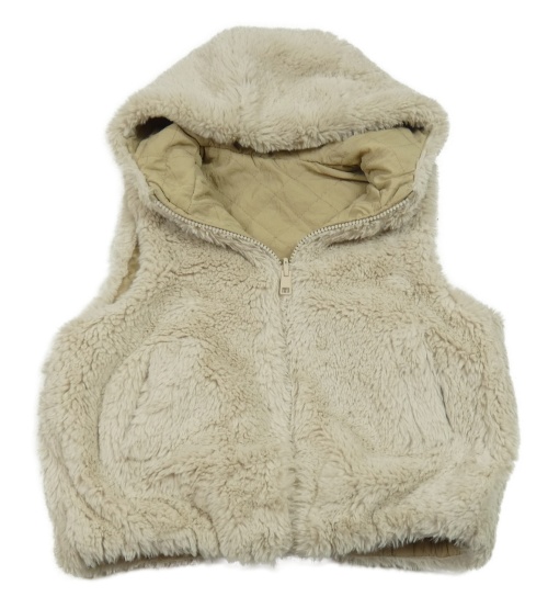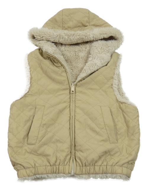 Béžová šusťáková zateplená oboustranná vesta s kapucí