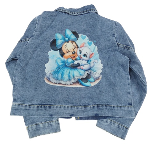Modrá melírovaná crop lehká riflová bunda s Minnie