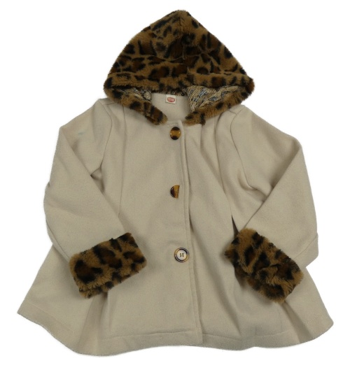 Světlebéžový flaušový kabát se vzorovanou kožešinou a kapucí
