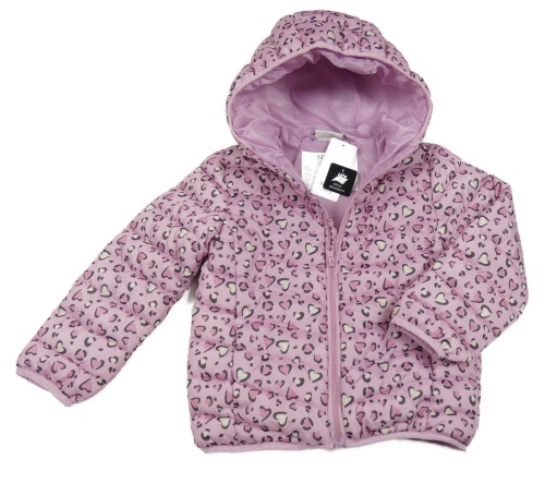 Nové - Růžovo-černá vzorovaná šusťáková prošívaná lehká zateplená bunda s kapucí