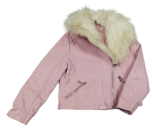 Světlerůžová koženková bunda s kožešinou Dunnes